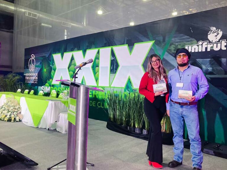 América Pérez y Alejandro de la Peña, estudiantes del CIAD, impartieron conferencias en el XXIX Simposium Internacional del Manzano y Frutales de Clima Templado realizado en Cuauhtémoc, Chihuahua